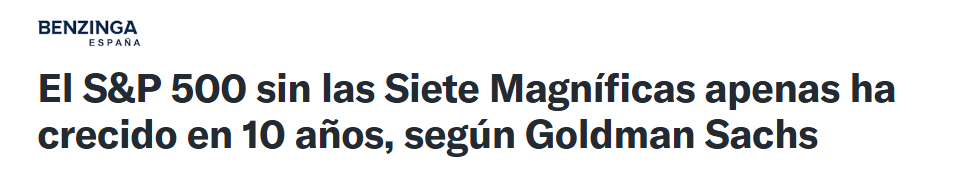 Hasta qué punto muchos índices están tan desproporcionados que, si quitamos las empresas de mayor peso, es posible que obtengan rentabilidades muy bajas. Muchos consideran el índice SyP500 como el mejor índice para invertir, pero resulta que solo es muy rentable gracias a 7 empresas de 500.