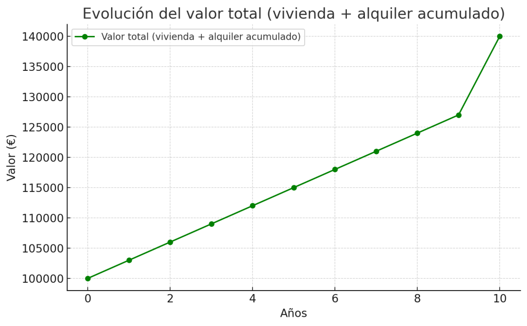 Podríamos decir que en esta operación hemos ganado 40.000€ después de 10 años.